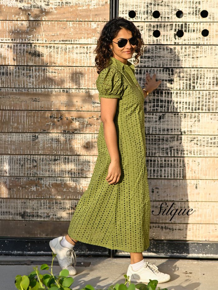 Embrace effortless elegance with this beautifully crafted olive green dress made from premium cotton Hakoba. Featuring delicate cutwork detailing, this dress offers a perfect blend of comfort, breathability, and refined styleāideal for warm days and all-day wear.