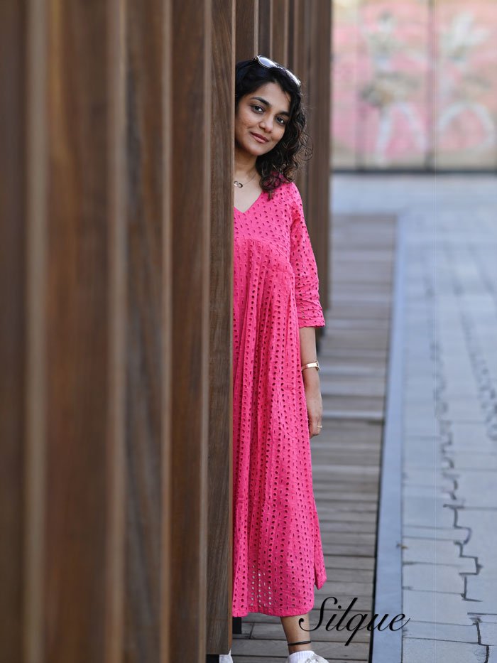 Elegant Pink Cotton A-Line Kurti with Aliya Cut