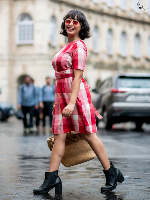 A sunshine state of mind, stitched into a dress. This red and white checkered cotton dress brings out the picnic nostalgia with its playful U-neckline, adjustable waist tie-up, and cute short sleeves. The white running stitch accents along the neckline add a handcrafted feel to this classic summer silhouette. It’s easy to wear, easy to love and easy to twirl in.